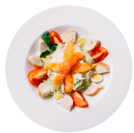 Una ensalada repleta de proteínas con verduras frescas, salmón ahumado y una vinagreta de limón para una comida rica en nutrientes.